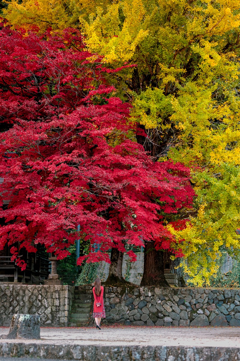 こちらは、大きな大きな紅葉とイチョウの木が隣り合い寄り添っています。