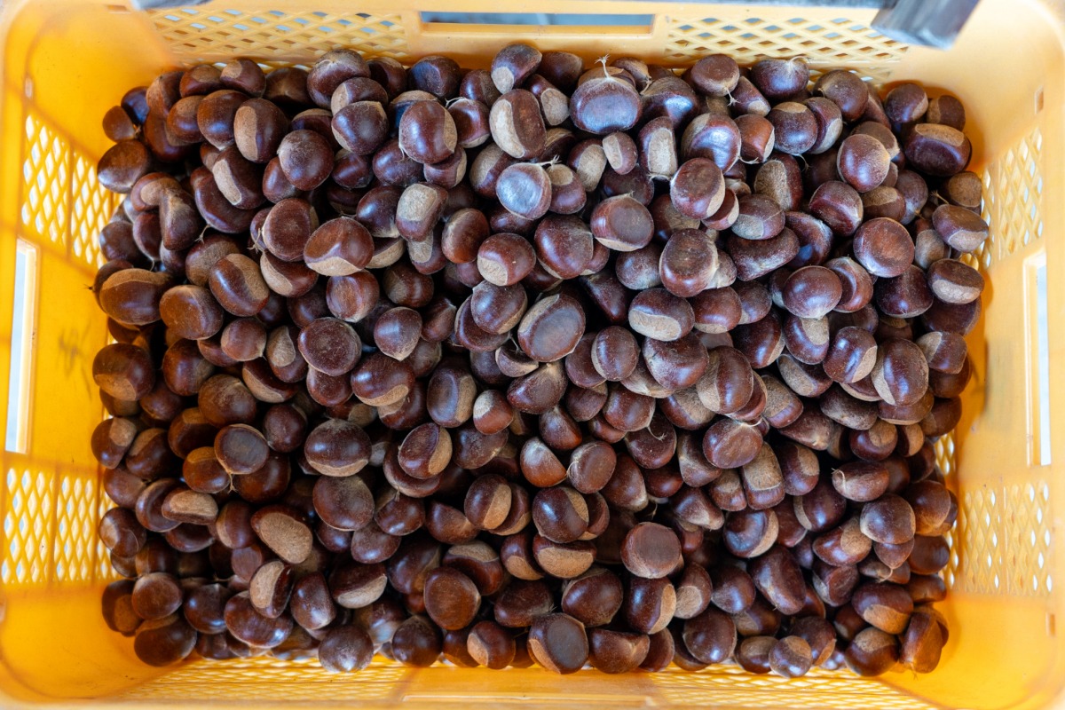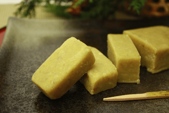 勝央町産の利平栗をふんだんに使い、伝統的な製造方法で作られているきんとん。砂糖はつなぎとして入れているだけなので、利平栗本来の甘みや風味が感じられる、素朴な味わいの一品に仕上がっています。「まるで生の栗を食べているよう!」と評判で、お茶請けにぴったりです。