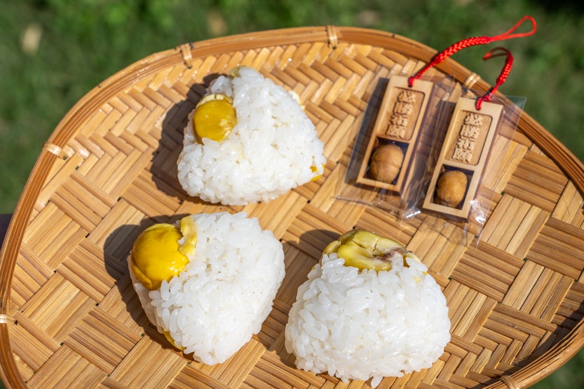 奇数(陽数)の中で最も大きな数である「9」は縁起がいいとされることから、「勝栗」は9個入り。一昼夜水に浸し、ご飯と一緒に炊いて食べることで“勝パワー”を体の中に摂取! ここぞという勝負の前にはぜひ「勝栗」を食べて、縁起を担ぎましょう。オリジナルの必勝祈願ストラップにも小さな勝栗が! 受験や試合の際に、お守りとして身に着けておきたくなるシブ可愛さです。