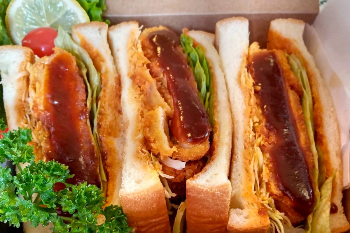 勝央町の玄関口、JR勝間田駅前で買える「勝三度(カツサンド)」。レストランのメニューとして提供されているトンカツを贅沢に使用したカツサンドは、ボリュームたっぷりで満腹感&満足感抜群! テイクアウト限定商品なので、お土産や差し入れ、または町の開運スポット「勝間田神社」参拝のお供にぜひ。