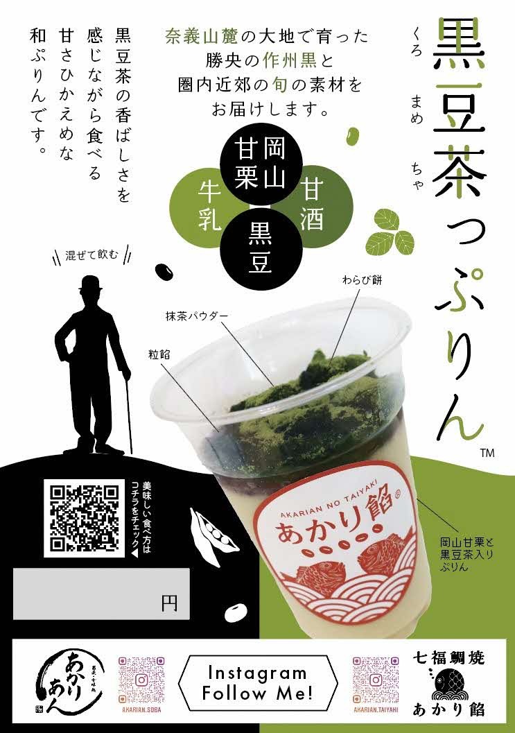 作州黒の黒豆茶、地産の岡山甘栗などを使用した「黒豆茶っぷりん」(プリン)も、勝ブランド認定商品化を進めています。