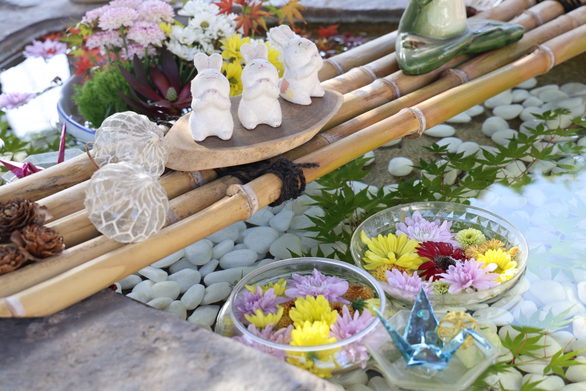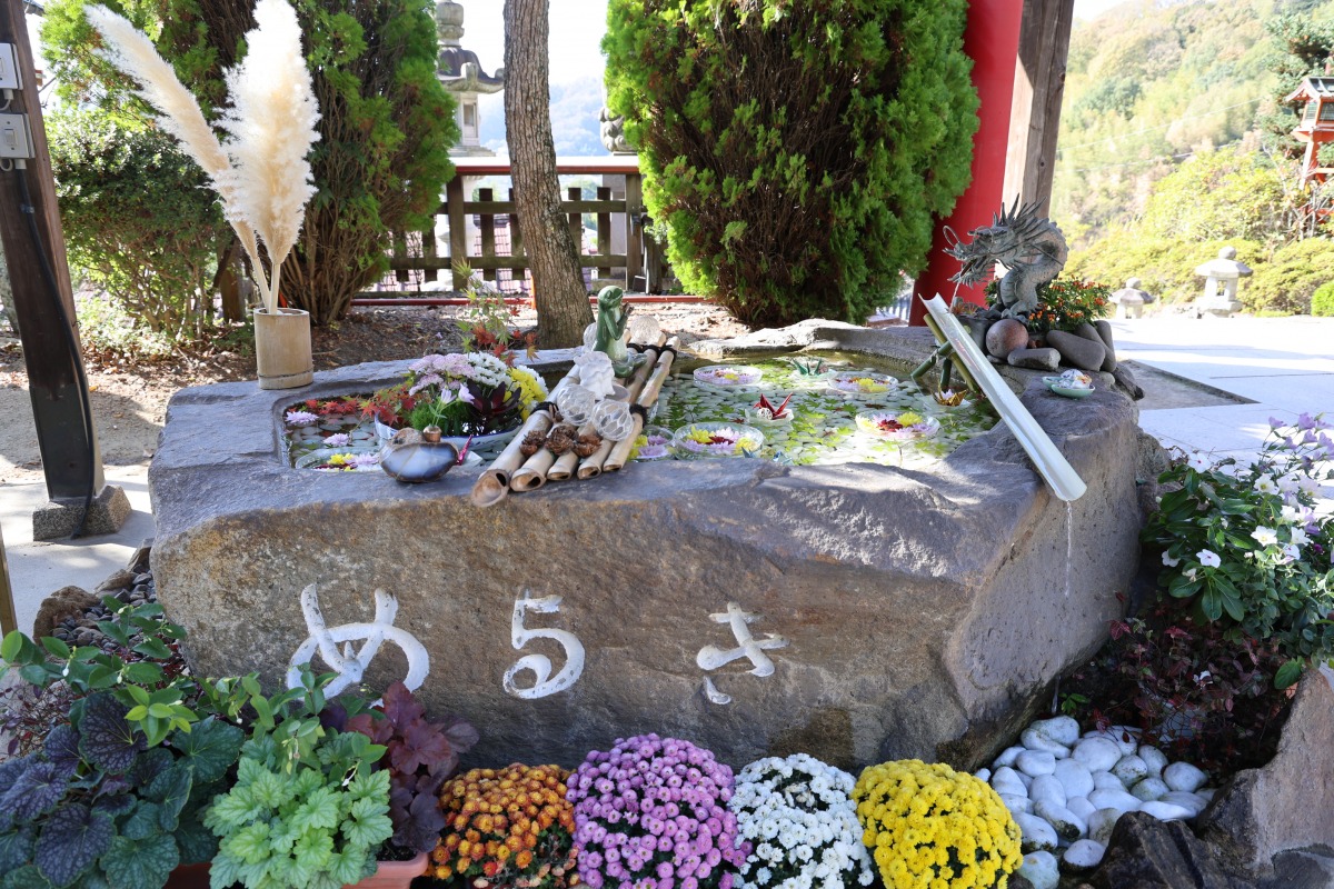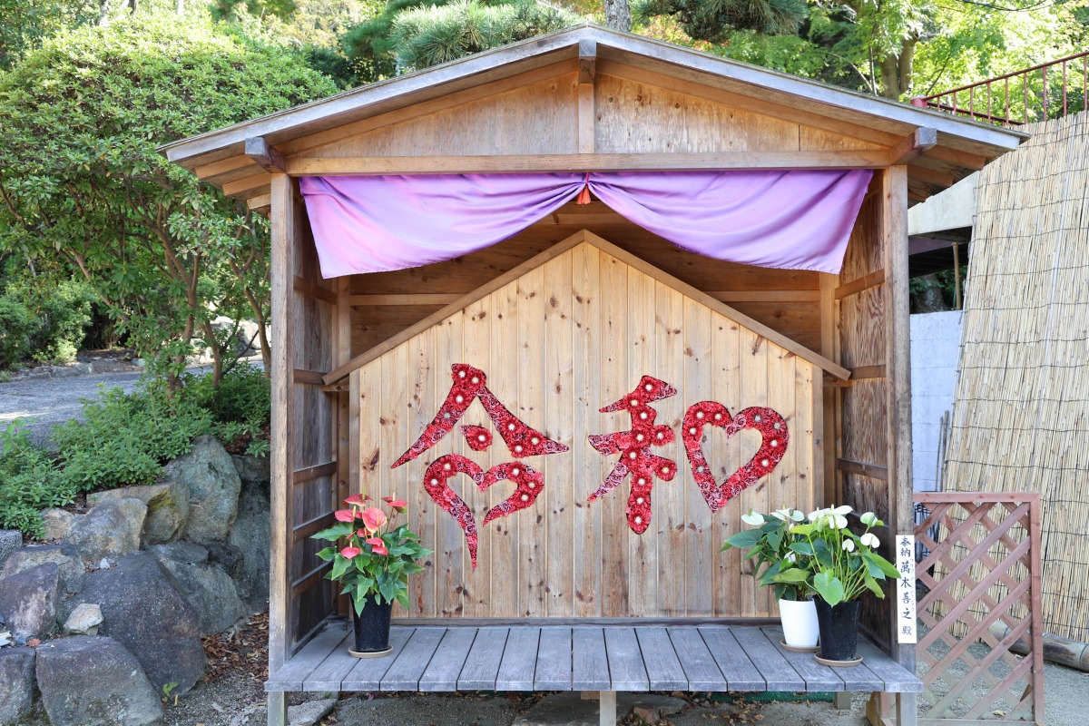 白雲大社おすすめの撮影スポットで、笠岡市のフラワーアートディレクター萬木善之氏が奉納されています。萬木さんは、NHKフィギュア大会のメダルブーケの制作者で、毎回話題のブーケを作られています。