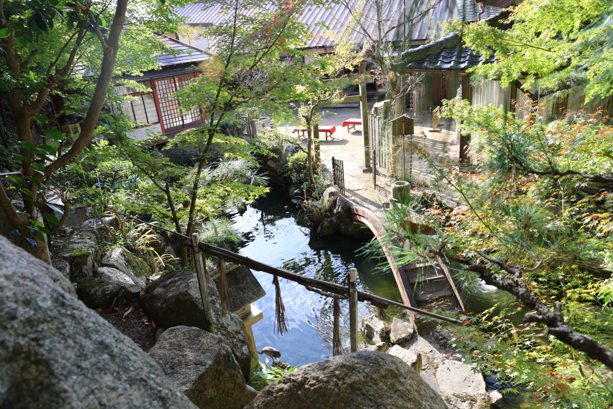 古乃美神道のお宮として知られていますが、自由にどなたでも参拝することができます。笠岡の出雲さんと言われ、縁結びの神社としてご縁の深い神様が祀られていて、境内の神様を巡りながら、四季折々の植物を楽しむことができます。ちょうどモミジが見頃を迎え、紅葉がきれいで、ライトアップもされているとのことで伺ってきました!!