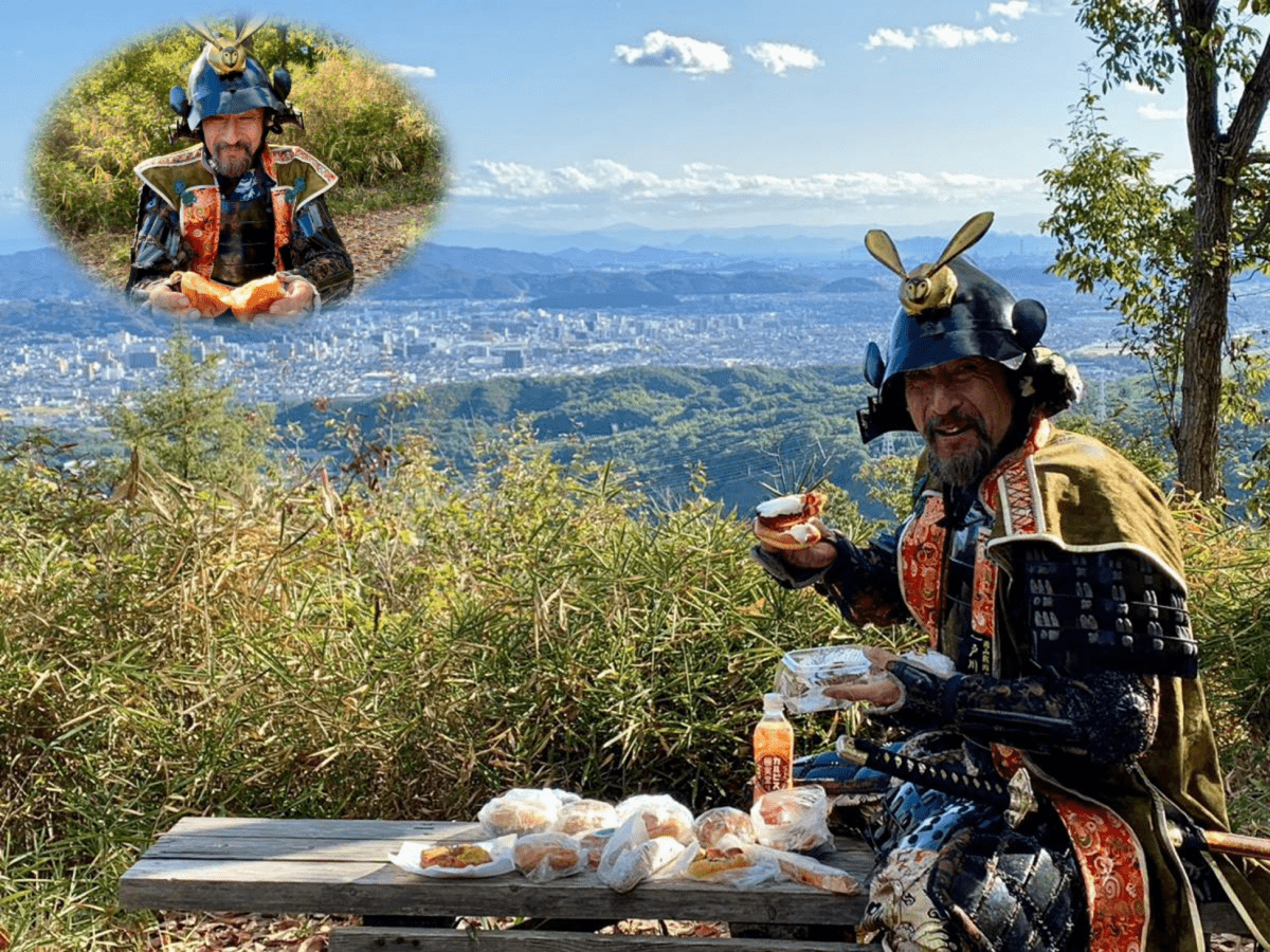 今回は岡山戦国武将隊の戸川秀安が、お弁当に人気店のパンを持ってハイキングコース「幸福の小径」を通って幸山城と福山城へ登った様子をご紹介しよう。