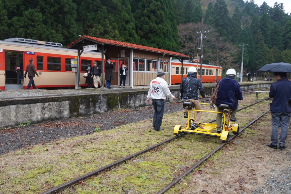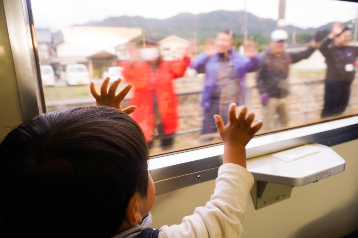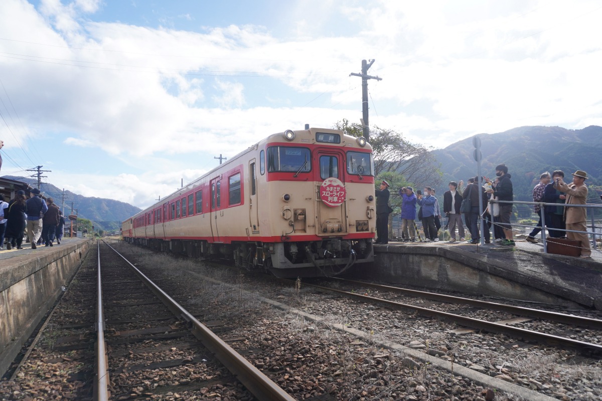 みまさかスローライフ列車は、因美線沿いの懐かしさと趣のある駅舎を巡りながら、地元の人による駅でのおもてなしを楽しみます。のんびりとした列車旅です。