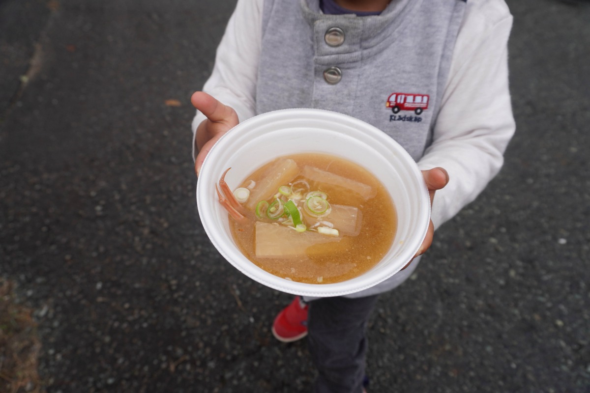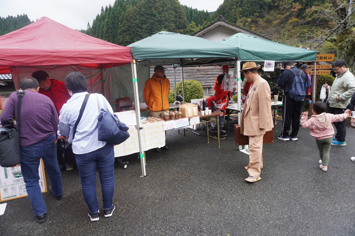 地元のおもてなしでは、うどんや焼き鳥、ビーフジャーキー、パウンドケーキなどグルメが充実。何かを購入したら、地元 加茂の特産品があたるくじ引きができます。残念ながらあたりませんでした。