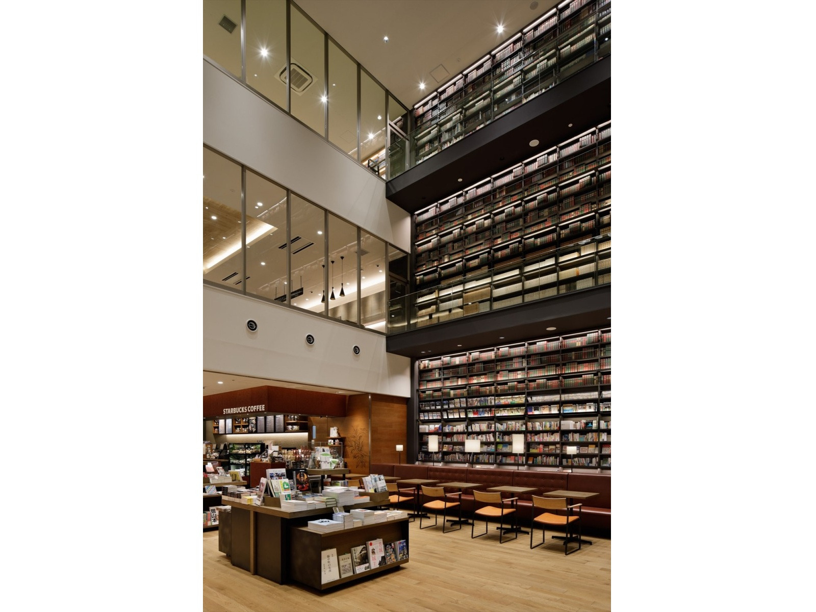 2017年2月にJR備中高梁駅直結の複合施設内にオープン。入り口を入ってすぐに目に飛び込んでくるのは、天井まで届く書架。4階には読みきかせコーナーやボーネルンドの遊具が設置された展望テラスもあって、子ども連れで利用する人も多数。テラスにはカフェのフードやお弁当の持ち込みも可能です。2階にはベンガラ色のスターバックス コーヒー、観光案内所も併設しており、備中松山城への乗合タクシーの受け付けなどの観光サービス提供のほか、地元の物産品も購入できます。