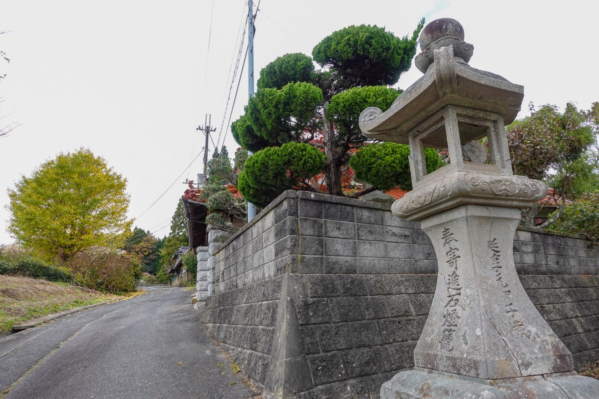 古い灯籠のある一本道を、200mほど緩やかに登っていきましょう。