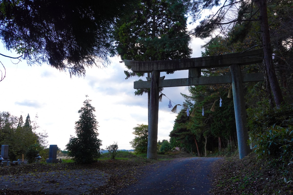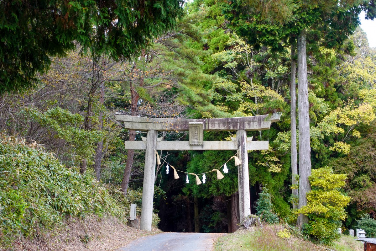 鳥居の手前までは民家もあり、のどかな里山風景が広がるのですが、鳥居の奥は暗く、緑の森のようです。
