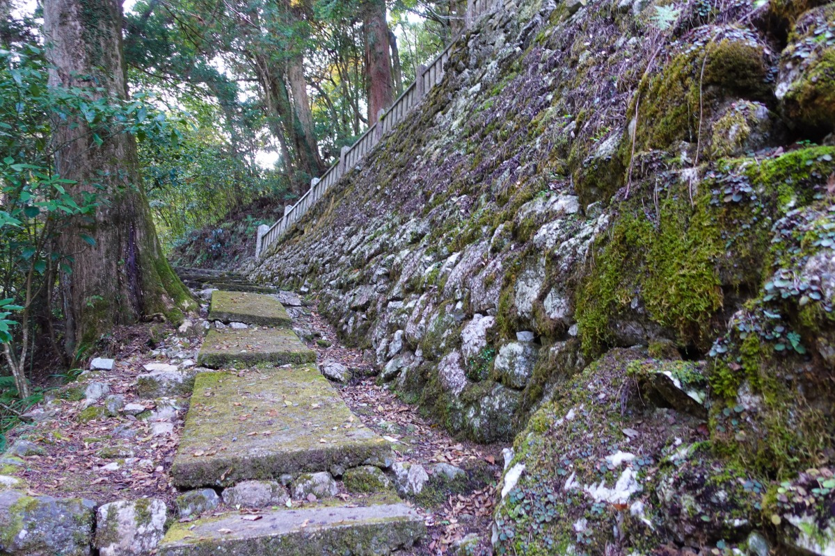 つづら折りに道を上がって行くと、途中から石畳に変わっていきます。
