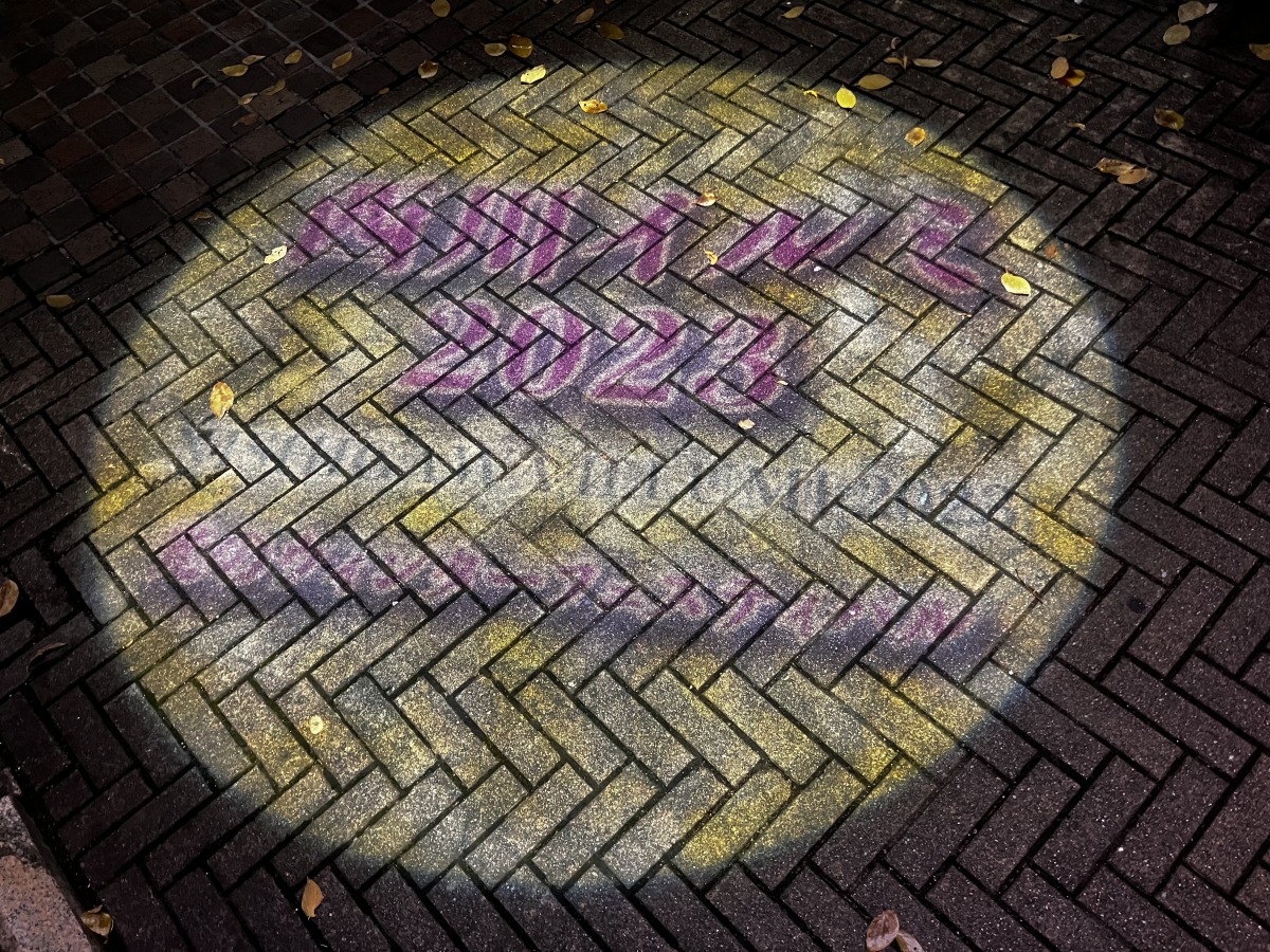 今年のテーマ「光のウィンターフェスティバル」が地面に投影されていました。