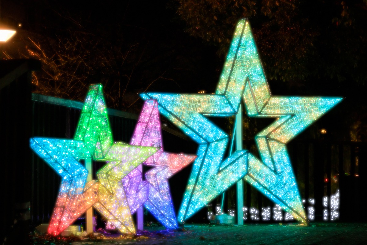 大きな星型のイルミネーションは、だんだん色がかわっていきます。