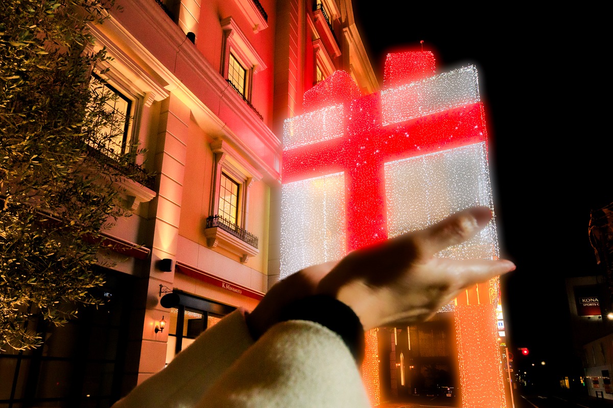 JR岡山駅から市役所へ向かう市役所通りに、キラキラのプレゼントボックスが出現!