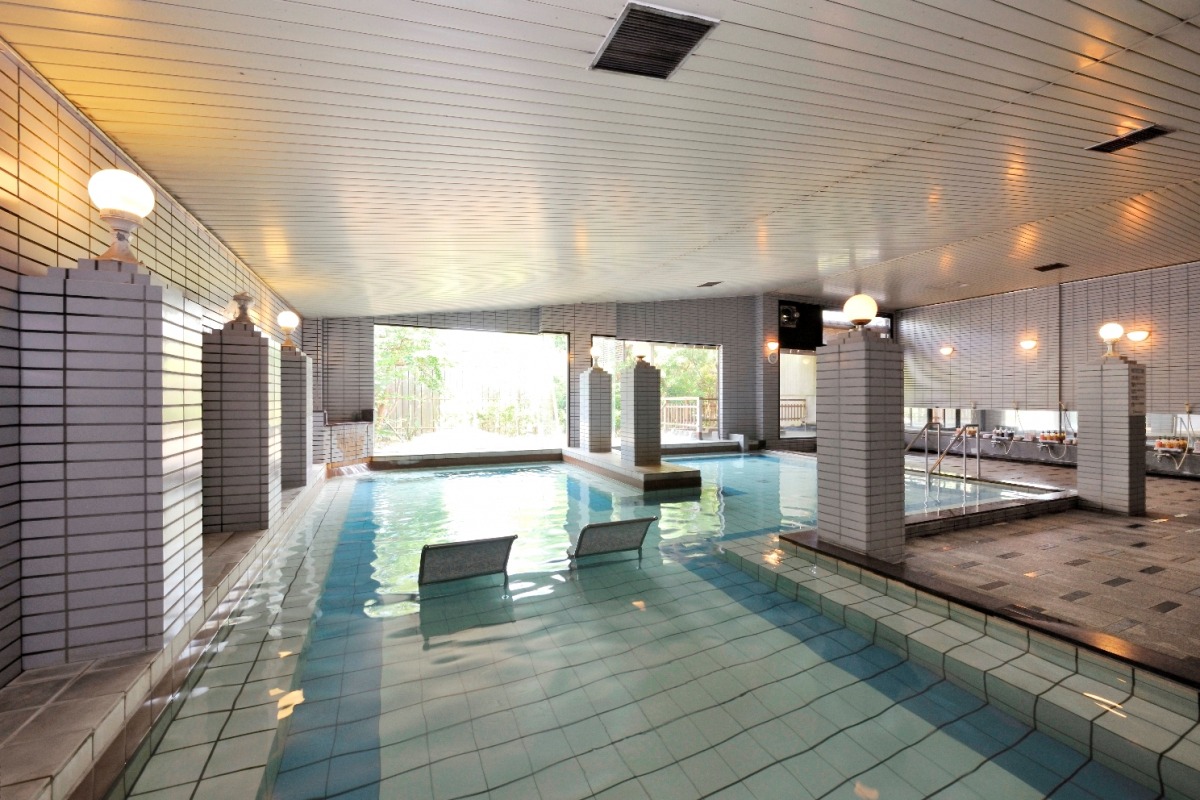 こちらは、古代ローマを思わせるような洋風の大浴場です。窓も大きくて開放的です。お風呂にイスがあるので、半身浴にもいいですね。一の湯・二の湯は朝夕で男女入替があります。