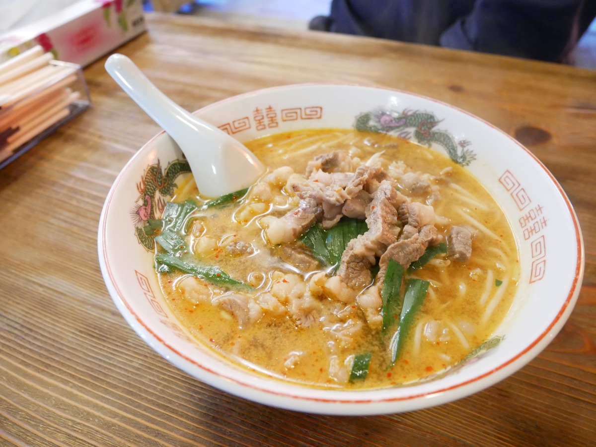 入浴後に「そずりラーメン」(920円/税込)をいただきました。県北の津山エリアではよく食べられる「そずり」。そずりは「削る」という意味で、骨のまわりの肉を使っています。このラーメンは人気ナンバー2!とっても美味しかったです。1人1杯食べればよかったと後悔したほど美味しい。