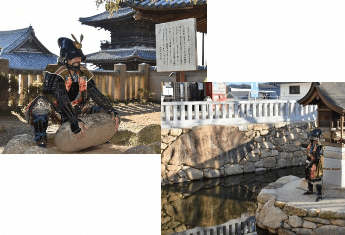 そしてあと一つ、明王院脇に立つ石碑がある。これは、宇喜多家の祖先と言われておる児島高徳・和田一族の供養塔なんじゃ。宇喜多家の旗印である「兒」はこの祖先である児島氏から取っているのじゃ。