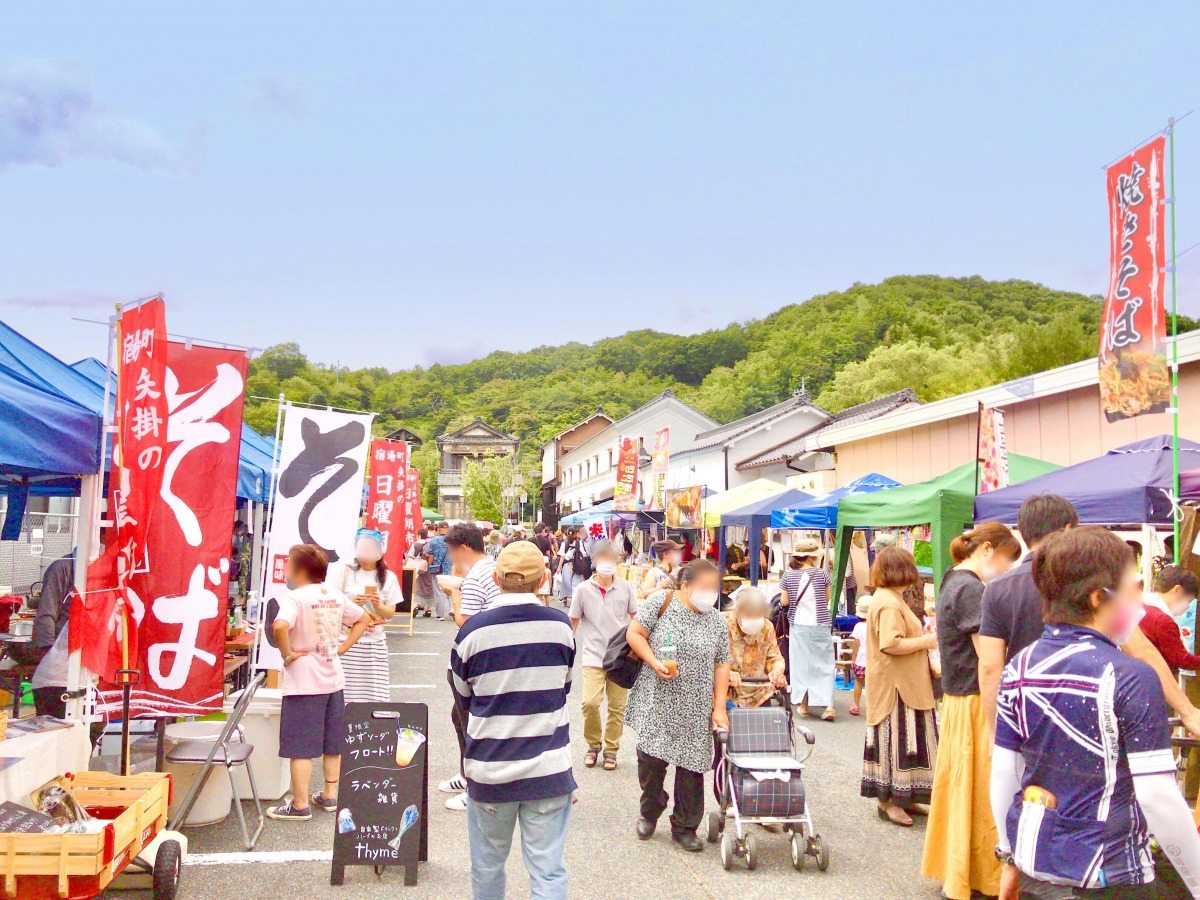 江戸時代の旧本陣と旧脇本陣が揃って残る旧宿場町にある「やかげ町家交流館」周辺にて、毎月第2日曜日に開催されている朝市で、町内外から訪れる多くのお客さんで賑わっています。11月は大名行列と同時開催で、開催時間も延長されます。