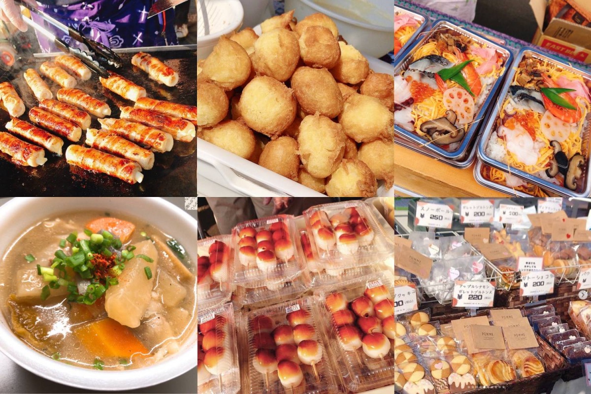 平均出店数は10店舗。たこ焼き、から揚げ、矢掛テンペコロッケ、名物の黒米うどんのほか、焼菓子やハンドメイドの雑貨、スーパーボールすくいなどのお店も。マルシェのほか、子どもが楽しめるイベントも不定期で開催されている、大人も子どもも楽しめるイベントです。
