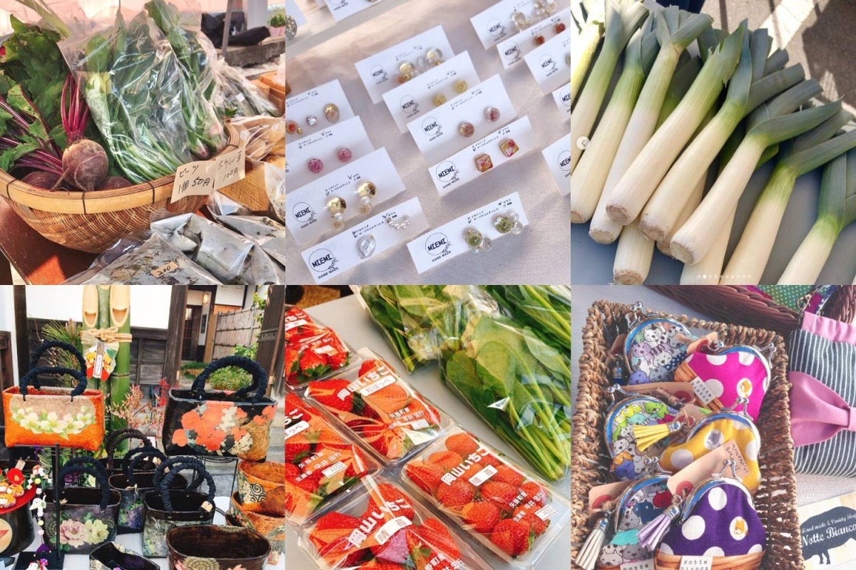 毎回平均40店舗が出店し、矢掛産の旬の新鮮野菜や果物を特価で販売。圏域の特産品をはじめ、矢掛テンペコロッケやばら寿司、焼鳥、焼菓子・パンのほか、ハンドメイド雑貨や木工品などのお店も並びます。生産者や作家と交流しながら買い物を楽しめる、アットホームな朝市です。