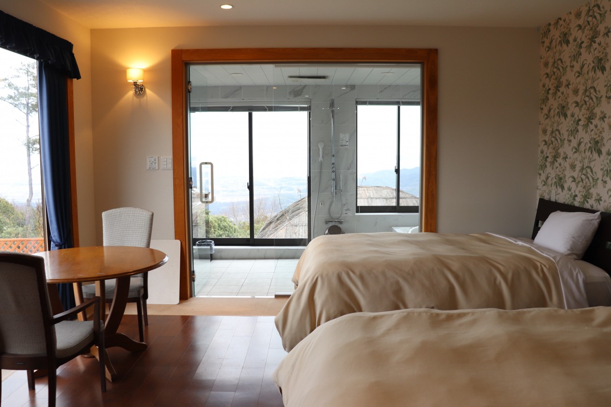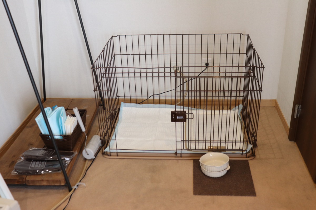 ワンちゃんと一緒に泊まれるホテルとしても人気で、お部屋にゲージも用意されています。芝生のドッグランもあるので、車でワンちゃんと一緒に旅行で来られるリピーターさんも多いそうです。ワンちゃんのお食事もご相談に応じてくださるそうです。