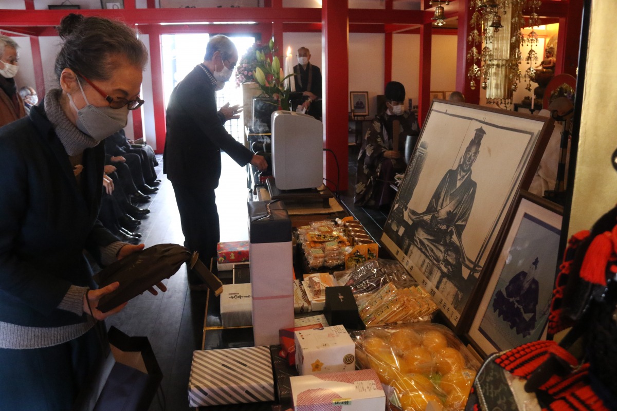 毎年、直家の命日近くの建国記念の日(2月11日)には法要が行われておる。全国から関係者と宇喜多ファンの歴史好きな方々がお参りに来られる。法要当日は石渡隆純住職や檀家、多くの歴史ファンらが出席する。(写真は昨年の法要の様子:山陽新聞社提供)