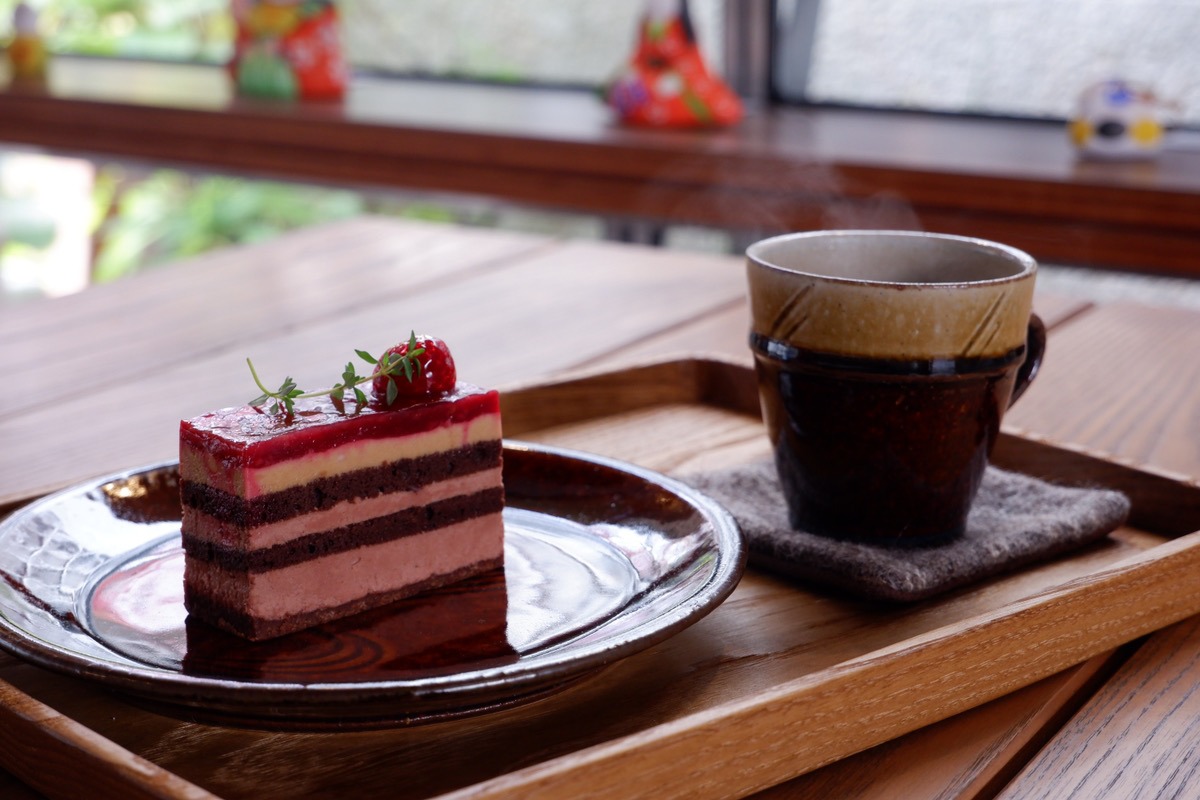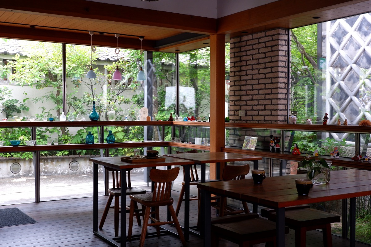日本郷土玩具館併設のカフェ「柳とはりこ」で休憩