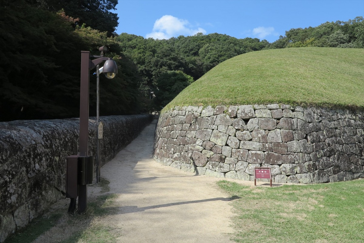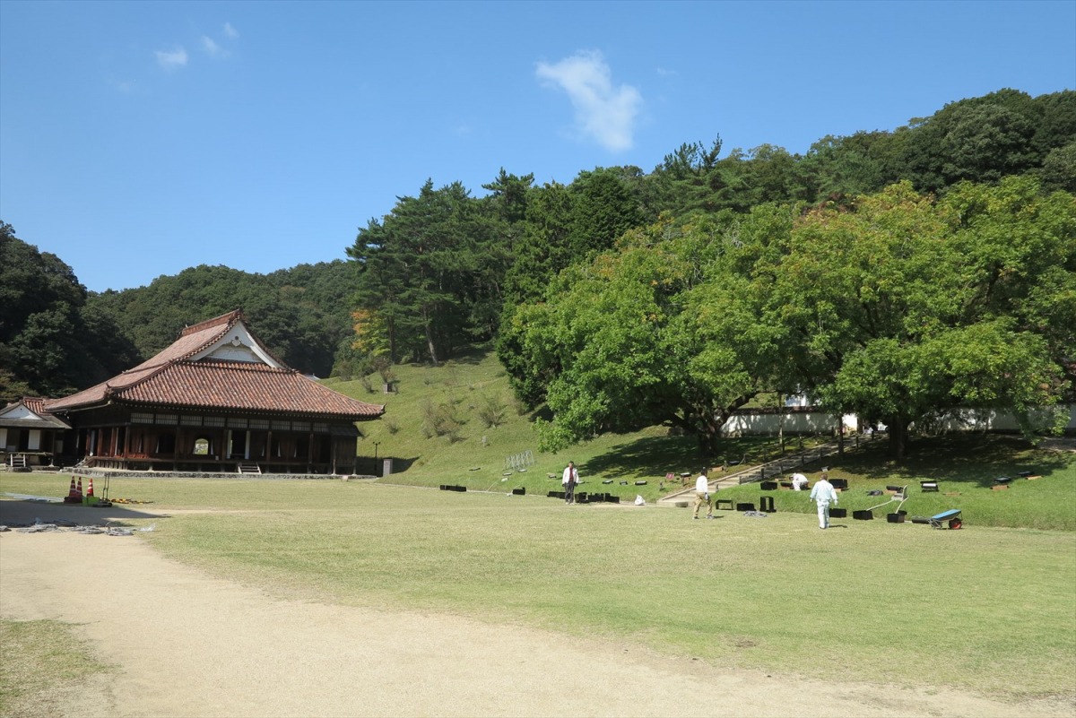 写真右手にある、こんもりと高い山。これ実は人工なんです。木造建築にとって、火災が何よりも脅威とされてきた江戸時代初期。津田永忠は何とかそれを防ごうと防火山を設けました。おかげで、2回ほど実際に火災を防げたとのこと。念には念を入れる。これが後々効いてくるわけですね…。