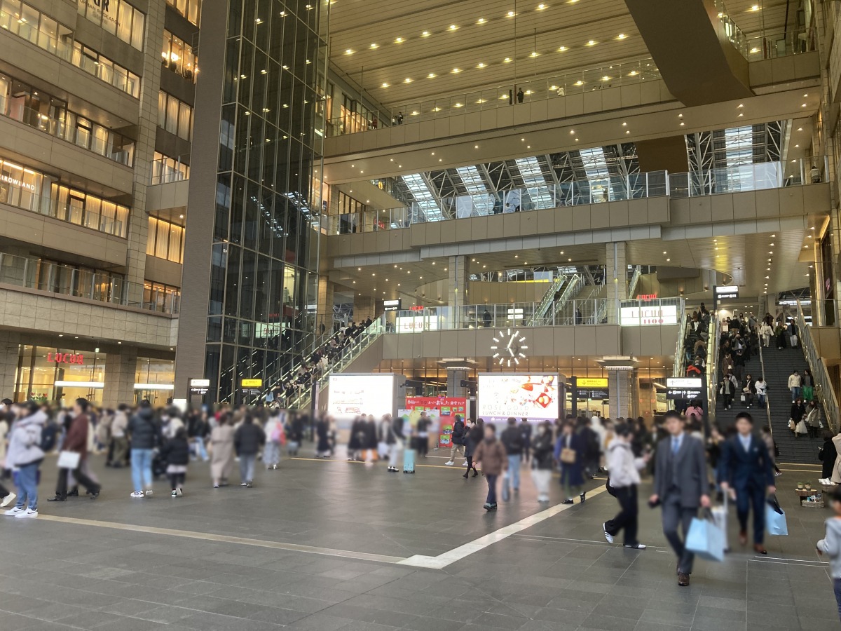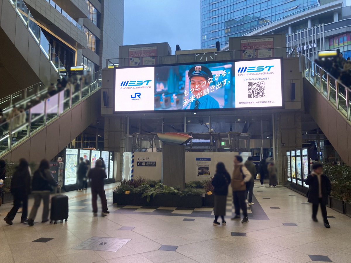 写真はJR大阪駅の北側2階。ルクア、ヨドバシカメラ、グランフロント大阪などがある方面で、ルクアとルクアイーレの間です。
