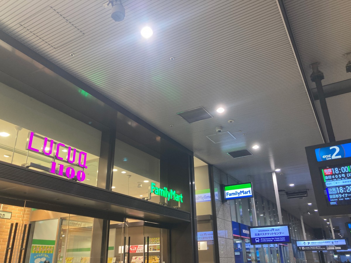 津山行きのバスのりばは1番。ファミリーマートや高速バスチケットセンターが目印です。