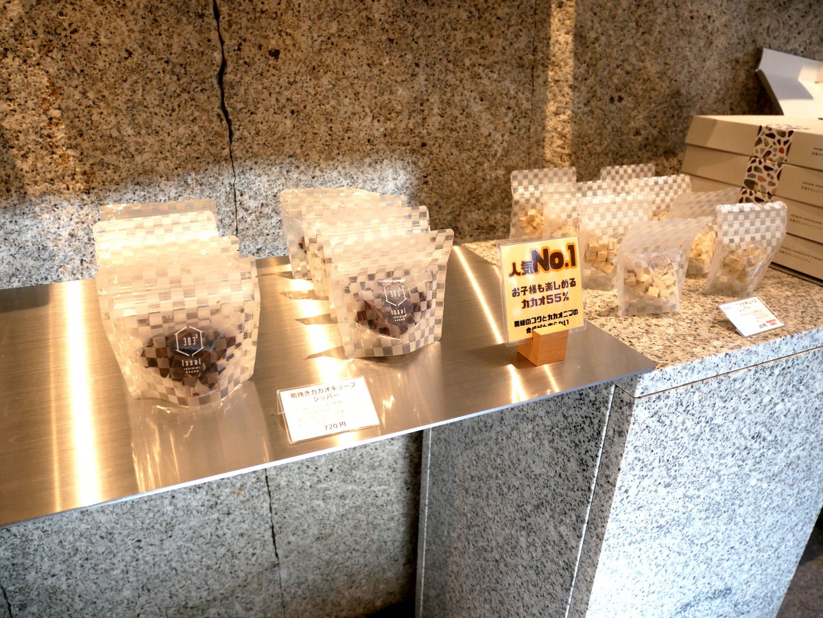 ミルキーで控えめな甘さが人気の粗挽きホワイトキューブは、ホワイトチョコレートが好きな方に是非食べてほしい商品。「ホワイトチョコレートの概念が変わります」とおすすめしていただきました。こちらもカカオ二ブ入り。