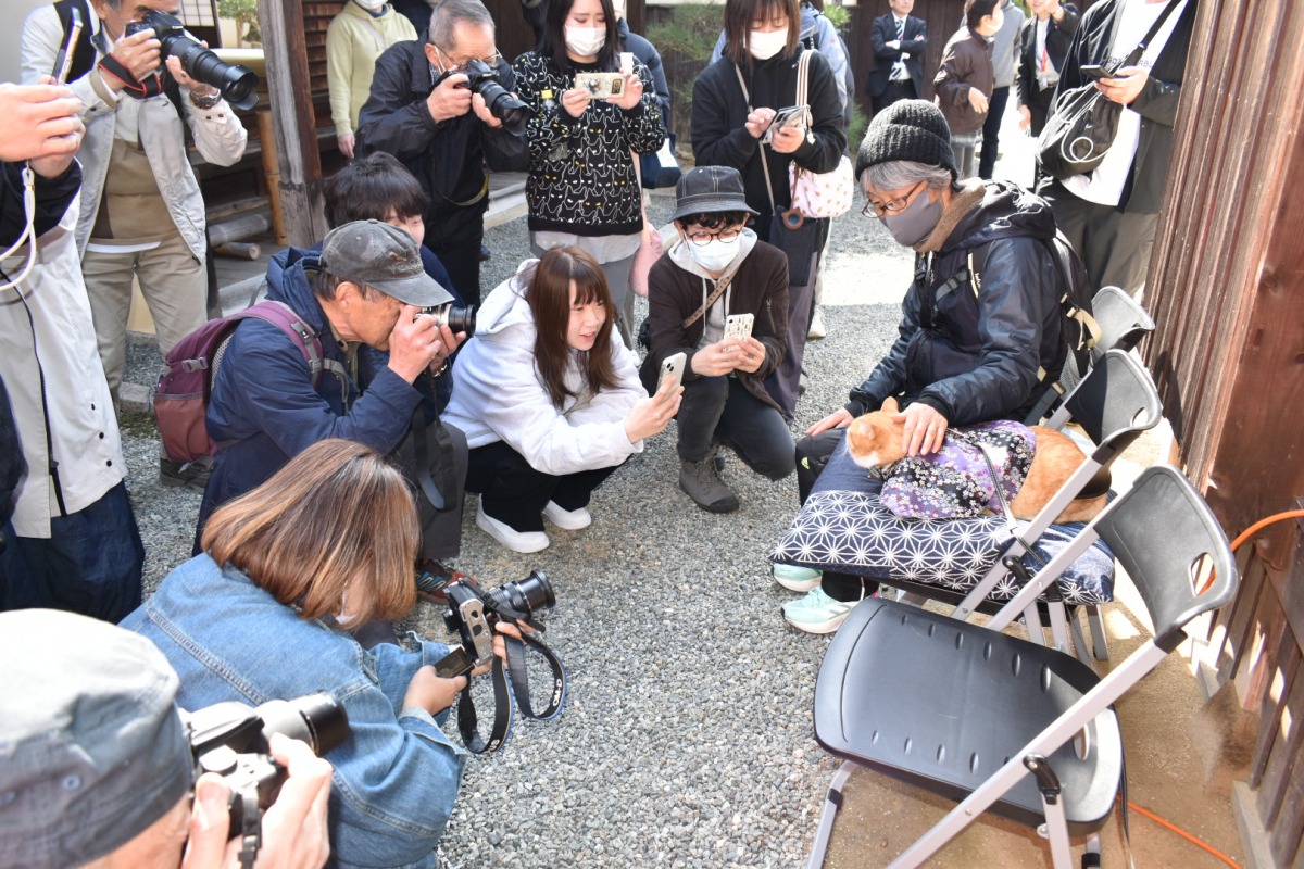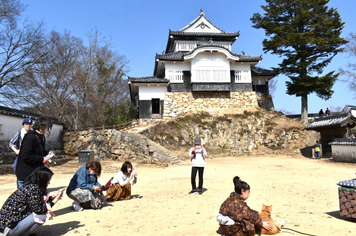 城主様は毎日10時と14時の2回、城内を見回ります。その時間が私たち登城者が「さんじゅーろー」と会える時間です。コロナ禍以後はナデナデしたり、抱っこしたり、触れ合えるようになりました。