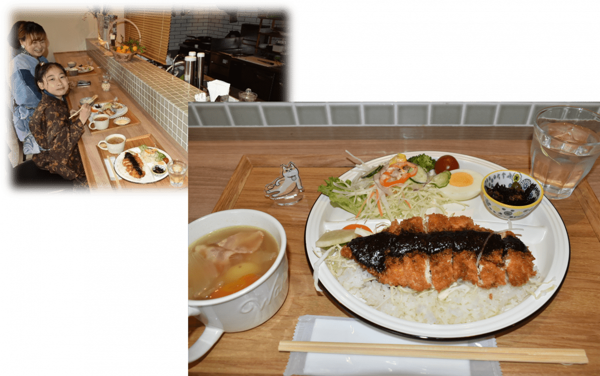 おしゃれな外観と店内。体に良い働きをもたらす菌を食事から取り入れるのが菌活。これをコンセプトに食生活を充実させるランチの出るお店です。おすすめは、柚子みそチキンカツプレートです。