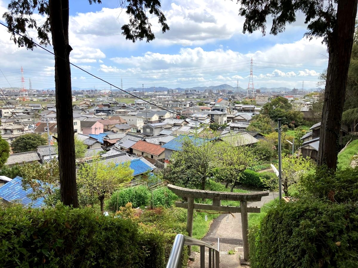 県道16号線沿いを南下(花尻方面)する途中では、「尾上八幡宮」を訪れましょう。寺社のある丘陵をのぼれば、町一望の絶景がひろがっています。趣ある参道。備前焼の狛犬や、由緒ある土蔵など。ひとつひとつが味わい深し。水路のなごりを感じる尾上の大井戸(水神様)もすぐそばです。