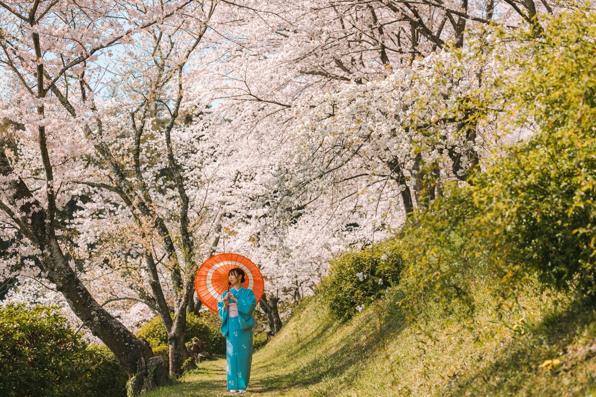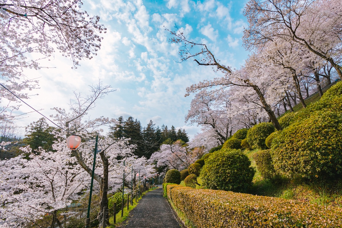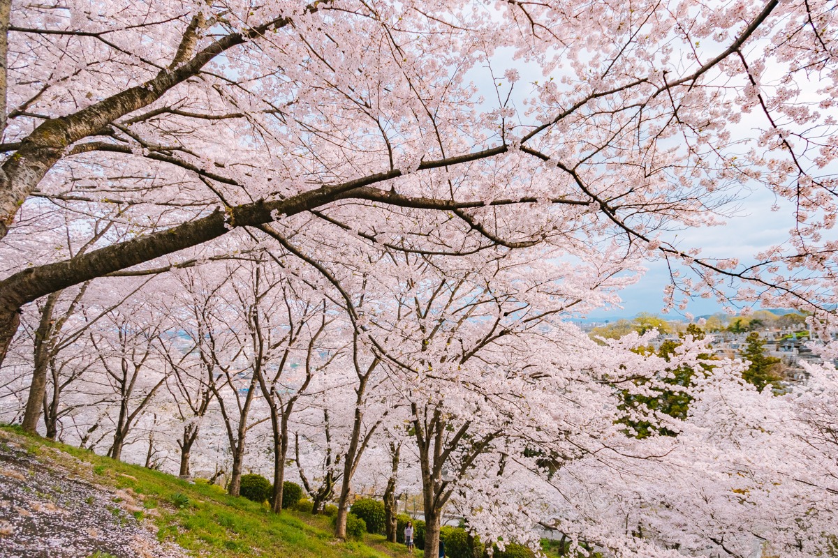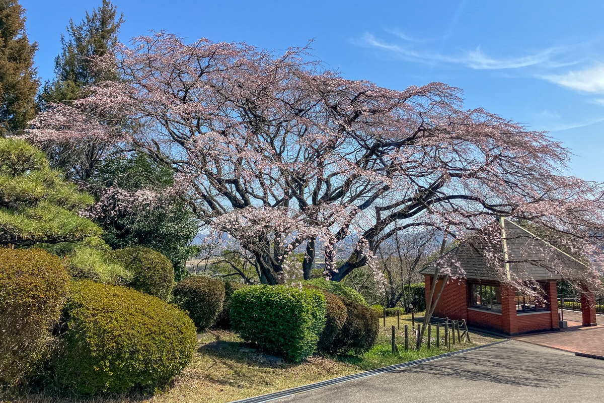 110,000平方メートルもの広さの園内には、なんと約1,000本もの桜があり、春には山全体がピンク色に染まります。ソメイヨシノ、シダレザクラ、オオシマザクラなど45種類もあるんですよ。