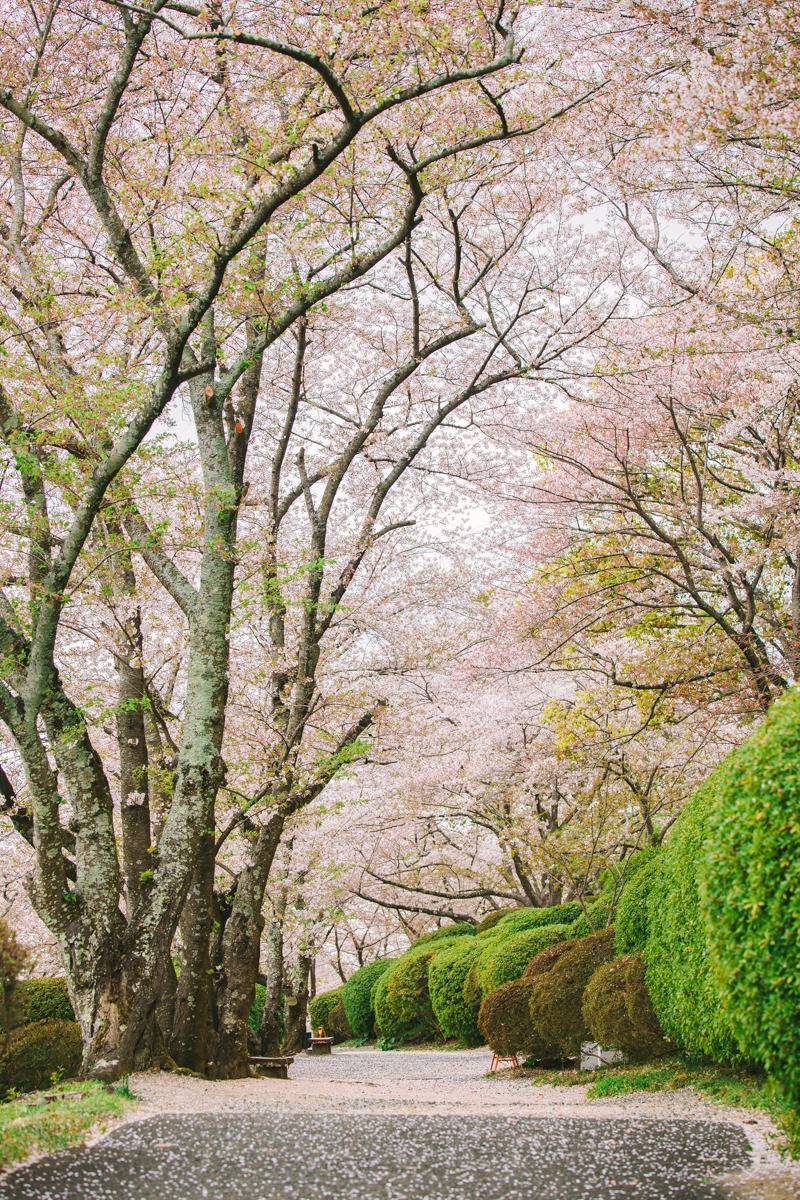 丘陵の一面に桜が植えられているので、眼前一帯がピンク色の世界となり、なんとも幻想的!