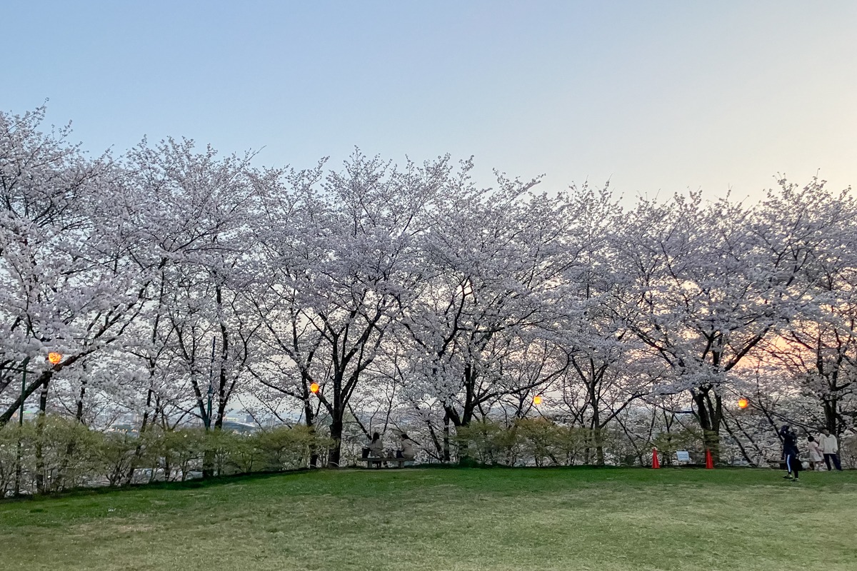 半田山植物園の中腹にある芝生広場です。広場の南側と西側にはずらりと桜が植えられており、大変美しい場所です。なんと今年は飲食もOK! しかも、芝生広場北側の道路にキッチンカーが出店するそうです。美味しいものを食べながら、ゆっくりお花見は最高ですね。