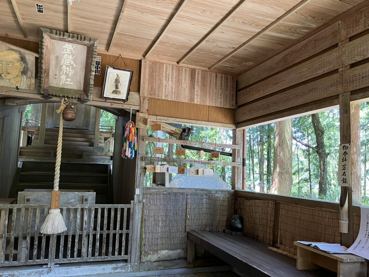 拝殿の壁に飾られた肖像画の武蔵が、こちらを見ているようで思わず背筋をのばしてしまいます。