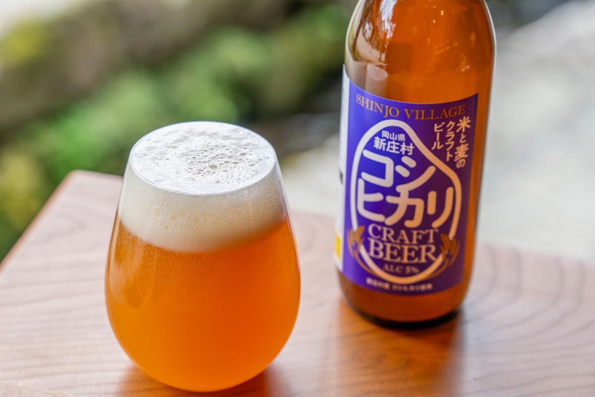 新庄村産のコシヒカリを副原料に使ったクラフトビールです。濃い黄金色のビールは人気のアメリカンペールエールスタイル。華やかなホップの香りに負けない、甘みをしっかりと感じられるコシヒカリらしい存在感がある味わいは、ホップとお米のいいとこどり! ひと口目のインパクトも抜群で、肉料理や味の濃い料理にもよく合います。醸造は岡山県真庭市勝山の「美作ビアワークス」。