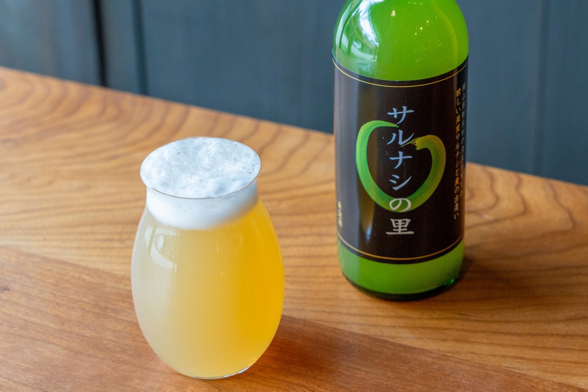 新庄村の山中で育ったサルナシの果実を用いて仕込まれたビール「サルナシの里」は、爽やかな香りとさっぱりとしたのど越しが特徴。原料となるサルナシの収穫量が限られているため、醸造数は毎年約1,500本と稀少です。醸造は岡山市の「吉備土手下麦酒醸造所」。新庄村の春の風物詩「がいせん桜まつり」にあわせて発売が開始され、毎年期間中に売り切れてしまうという幻の逸品です。2024年は3月30日~販売開始。がいせん桜通りの新庄宿大黒屋((株)サルナシの里新庄)前で購入できます。