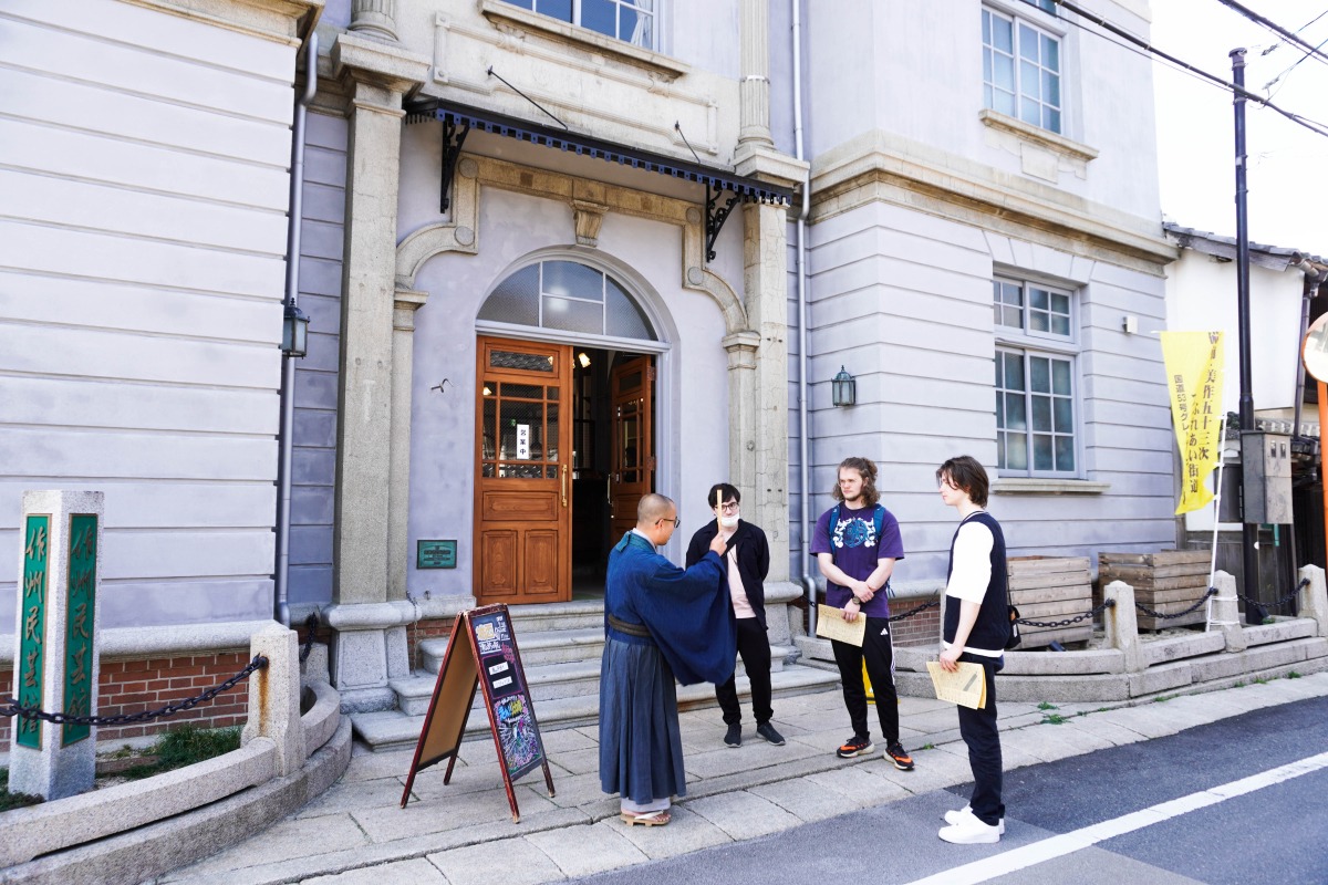 おかげめぐりのスタートは「作州民芸館」から。ここで案内をしてくれる住職さんと合流します。今回一緒に参加したのは、日本在住のアメリカ人、ドイツ人、フィンランド人の3人です。