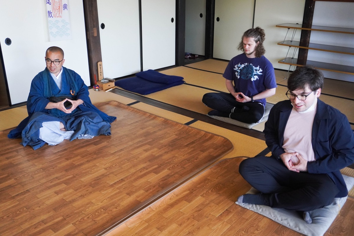 約10〜15分間の座禅体験で、心が少し穏やかになりました。外国人の3人にとっても初めての体験。古くからの日本文化に触れられて大満足でした。
