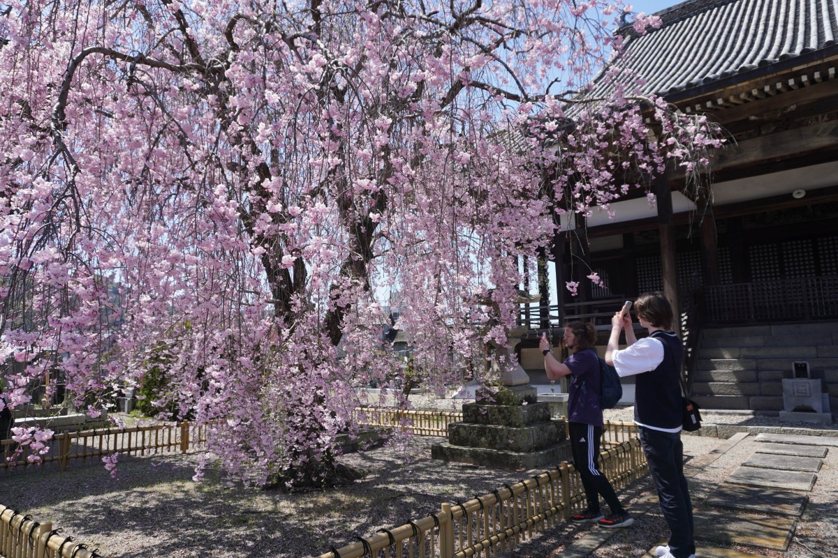 訪ねた日には境内のしだれ桜がきれいに咲いていました。皆、しだれ桜の美しさに感動して何枚も写真を撮っていました。
