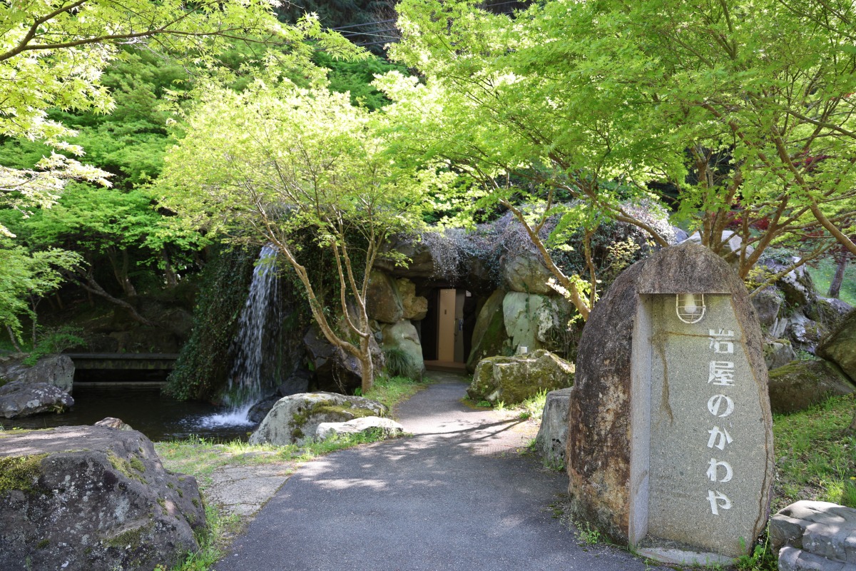 「岩屋のかわや」と書かれた石塔がありました。トイレのことですが、滝が流れ新緑もきれいで、なんだか洞窟のようで引き寄せられました。トイレは岩でできた洞窟の中。トイレの概念が変わる気がしました。