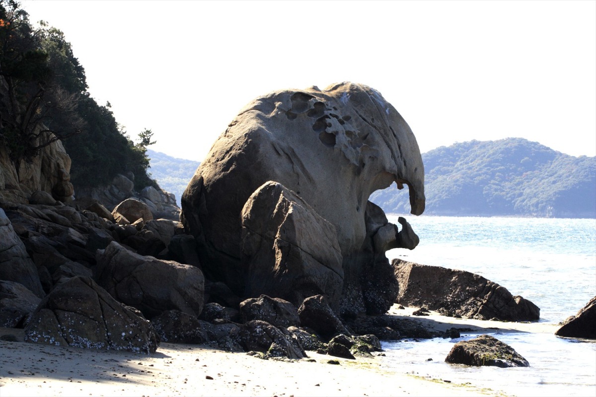 倉敷市下津井の沖合、無口島にある岩。高さ7.5mの花崗岩で、風や波の浸食により、まるで象の姿に見える奇形岩塊となっています。国指定の天然記念物です。