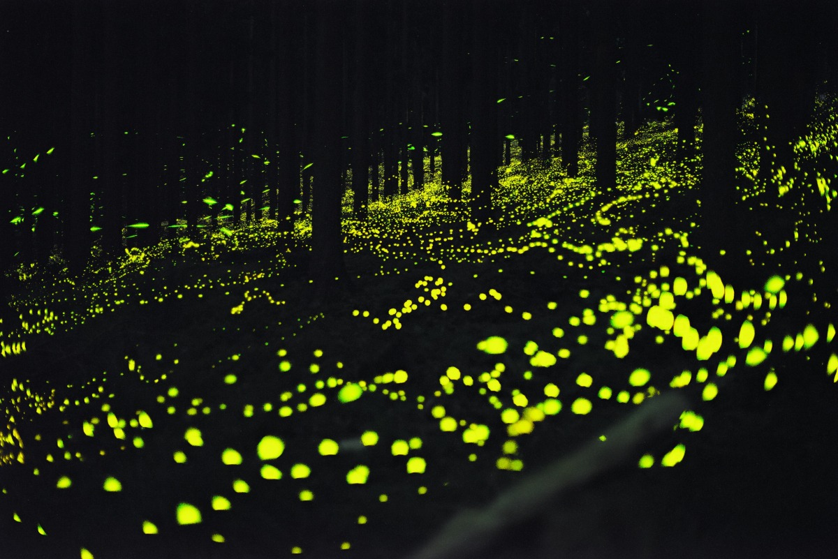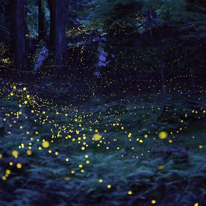 西粟倉村では例年7月上旬から第3週目頃にかけて、「大茅スキー場」あたりから「若杉天然林」へと徐々に北に場所を移しながら、林の中を幻想的な光が飛び交う様子が見られます。特に晴れた日の、月のない夜が美しく見られるので、天候をチェックして出かけてみて。
