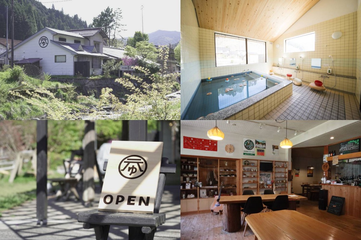 川沿いに佇む天然温泉付きのゲストハウス。間伐材を薪に変えて調理や暖房に利用しており、薪で沸かす温泉は日帰りでも楽しめます(大人500円小学生250円/乳幼児無料)。レストランでは鹿肉を使ったジビエメニューや、西粟倉のヒノキ酵母で作るパンなど、森の恵みを堪能できる料理が味わえます。