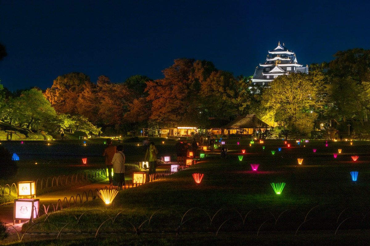普段は見ることができない、カラフルな光に彩られた岡山後楽園と岡山城は必見です。