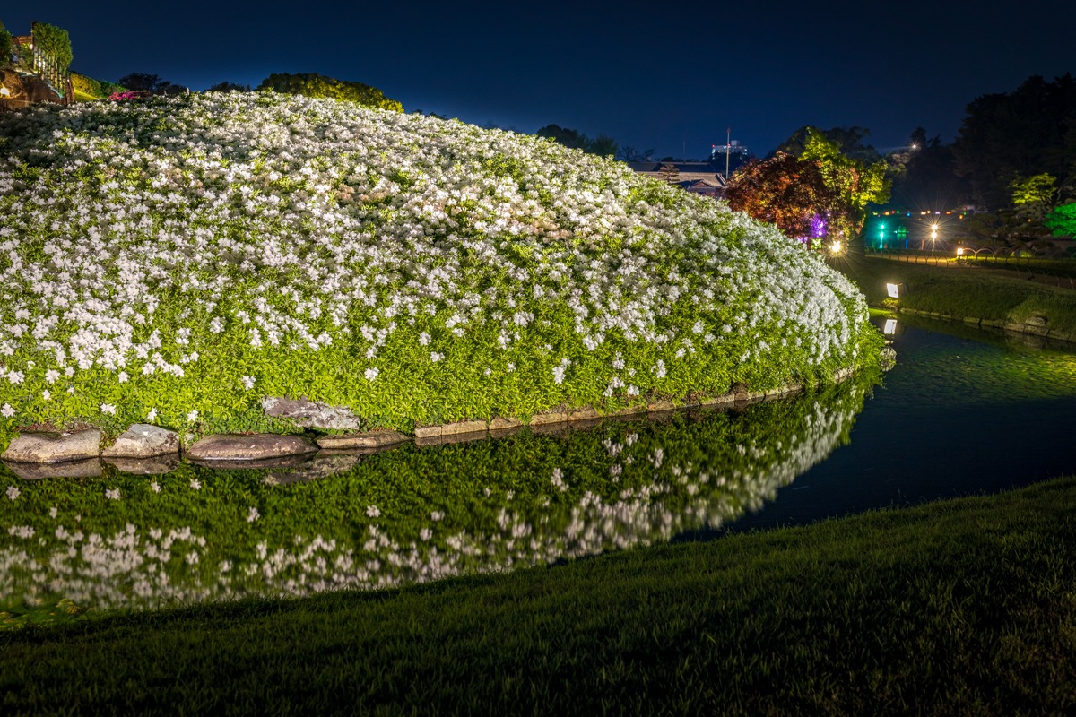 花々にもライトアップが施され、夜でも美しい姿を見ることができました。