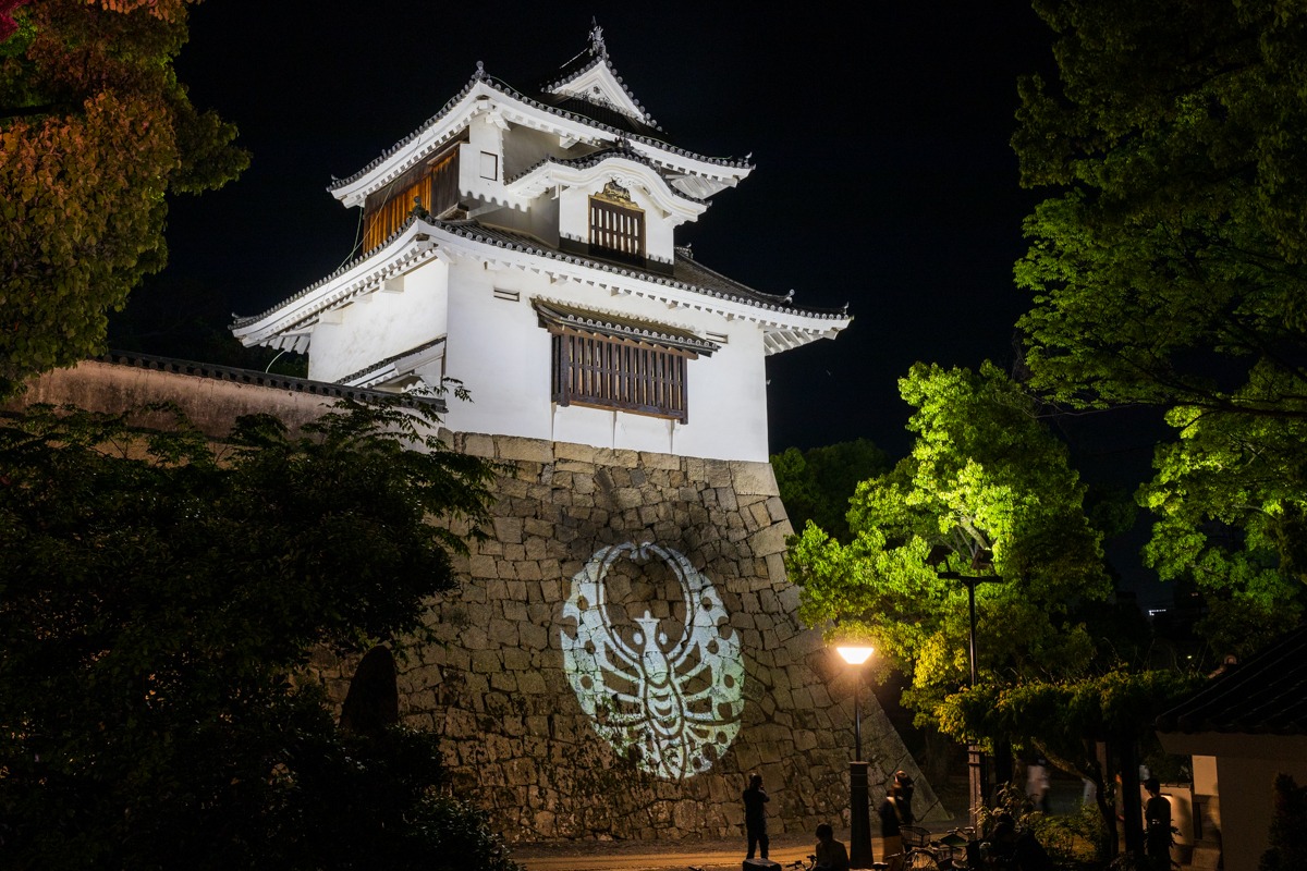 月見櫓には、備前蝶と呼ばれる池田家の家紋が投影されていました。