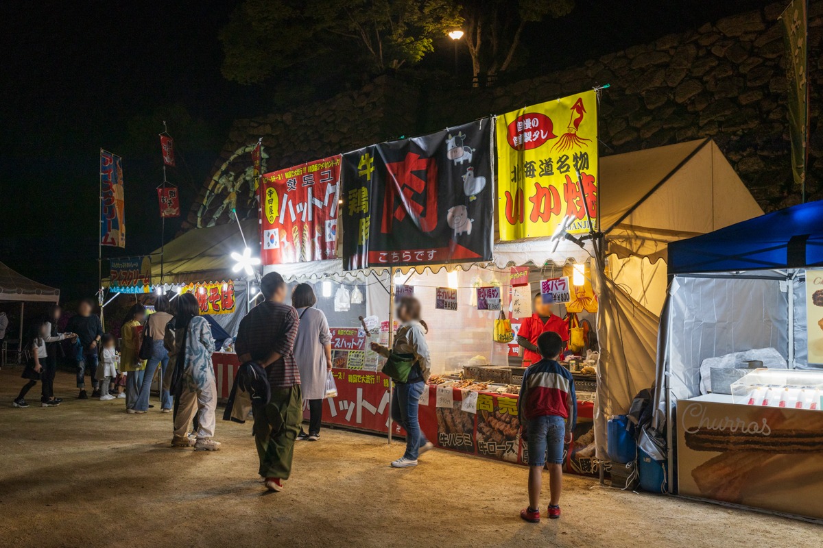 岡山城下段では、焼きそばやたこ焼き、アイスクリームなどの屋台がならんでいました。